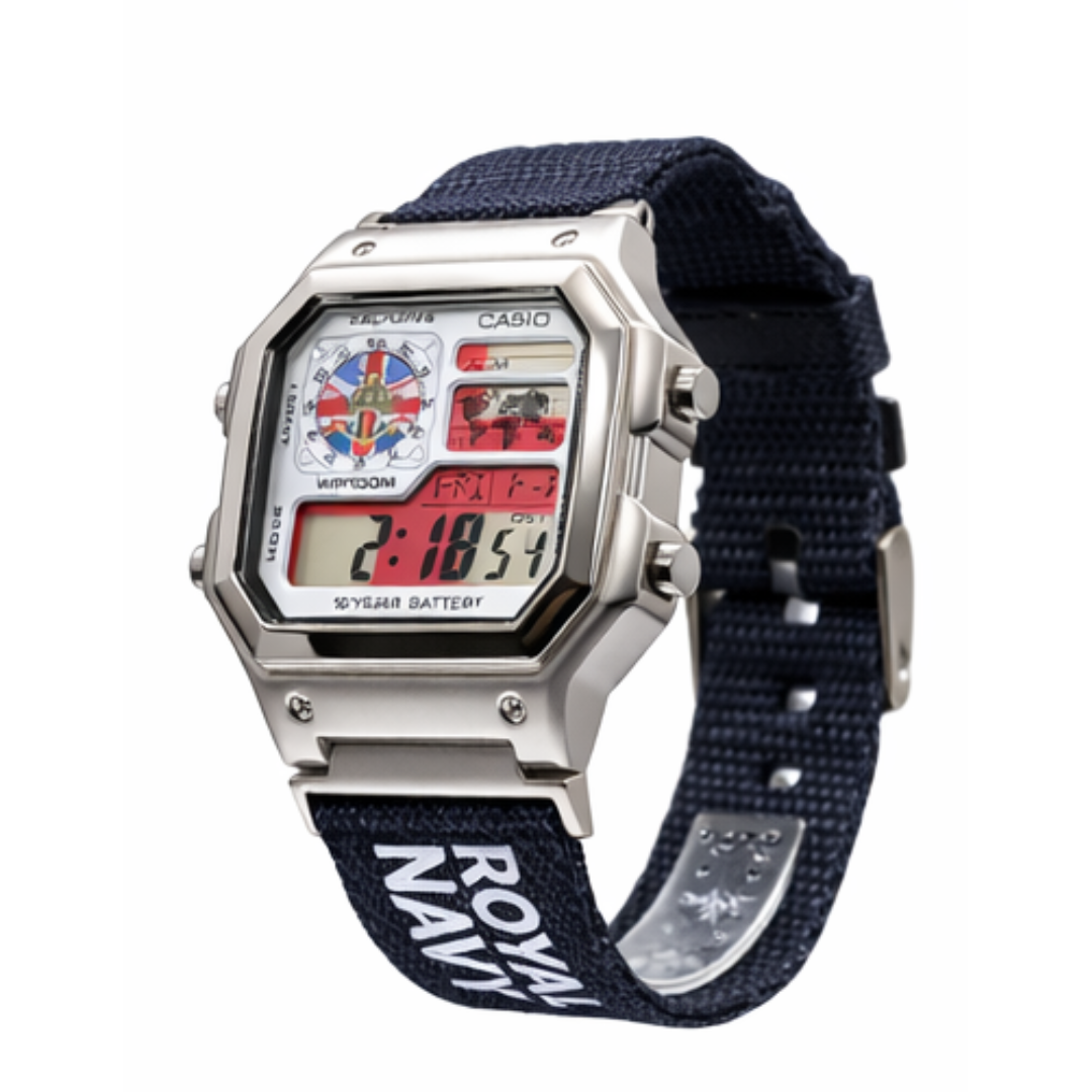 A caixa robusta em aço com acabamento premium e a pulseira em nylon resistente com identidade Royal Navy criam um visual marcante e versátil. Combina perfeitamente com roupas casuais, esportivas e até com terno.