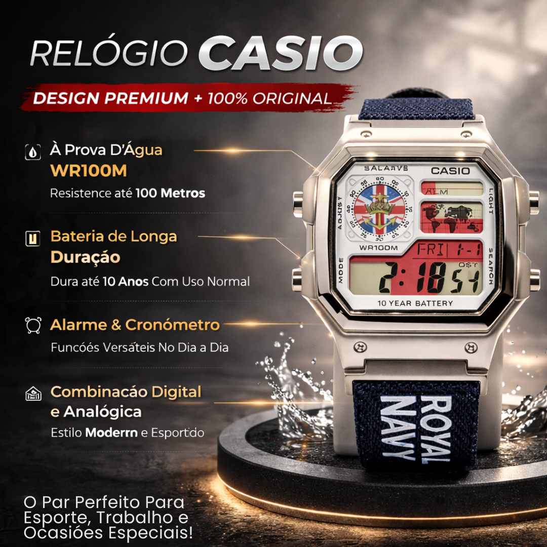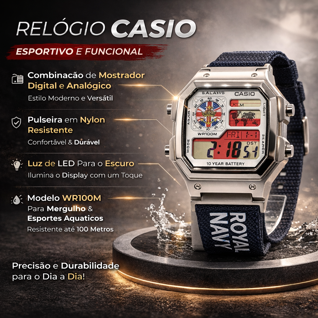 Imagine um relógio que une resistência, precisão e personalidade marcante. O Royal Navy WR100M foi criado para quem busca um visual forte, acabamento premium e desempenho confiável no dia a dia.